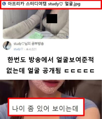 한번도 얼굴 공개 안했던 공부방송 여캠 얼굴 공개됨 ㄷㄷㄷ
