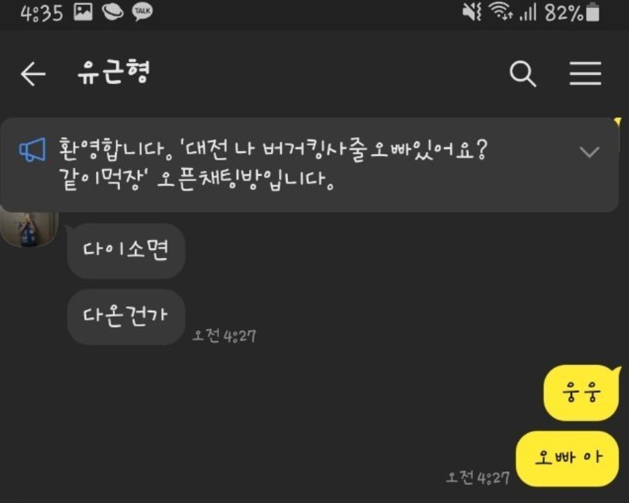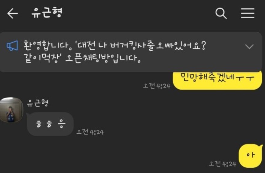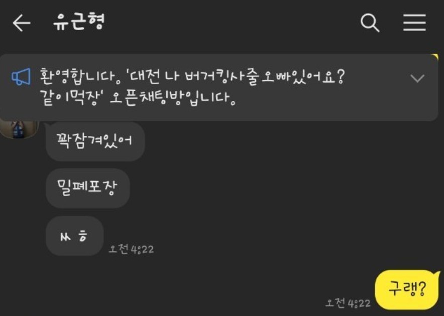 새벽에 버거킹 먹고싶었던 오픈톡녀 대참사 ㄷㄷㄷ