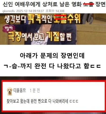 신인 여배우에게 상처로 남은 영화 ㄴ…출 장면 ㄷㄷㄷ