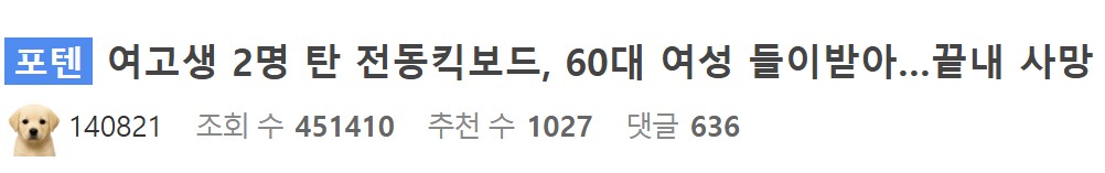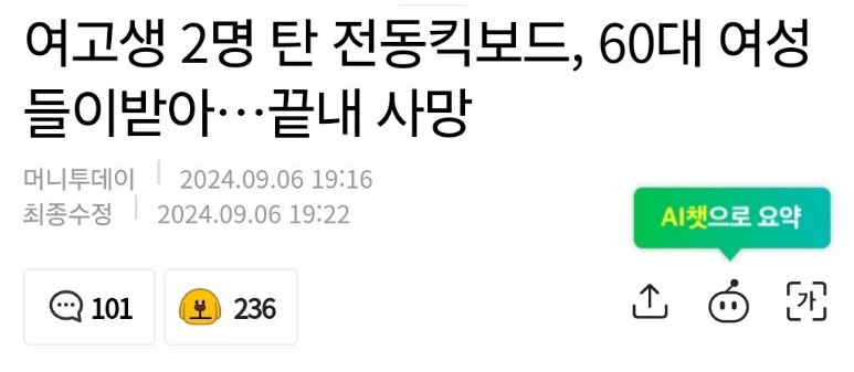 +작년 전동킥보드 사망사고ㄷㄷ